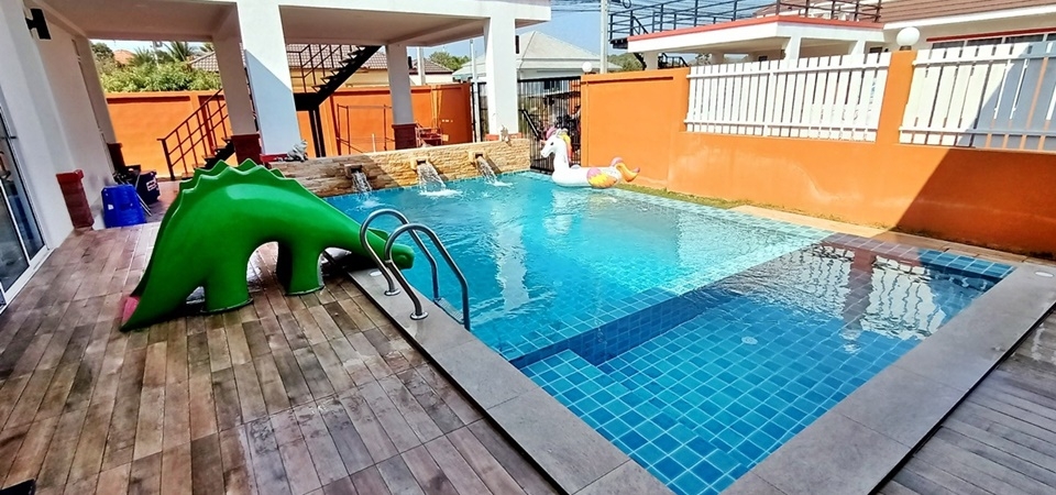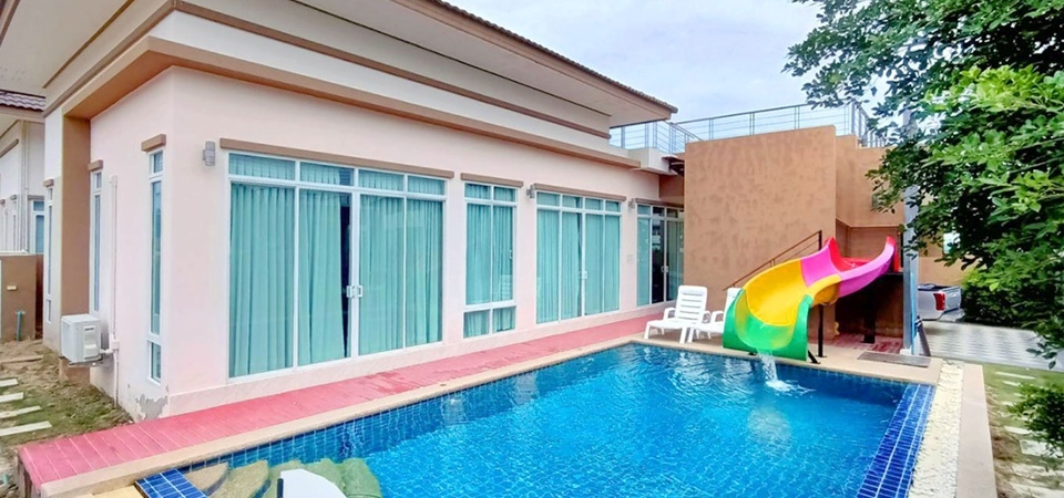 ราคาพิเศษ (วันอา.-ศ.) คืนละ 2,590.-/10 ท่าน บ้านพักตั้งอยู่ไม่ไกลจากตัวเมือง ซอย 70 มี 3 ห้องนอน 2 ห้องน้ำ รองรับได้ 10 ท่าน เสริมได้ 3 ท่าน บ้านพักมี สระว่ายน้ำส่วนตัว สไลเดอร์ โต๊ะสนุ๊ก พร้อมคาราโอเกะ + ไฟเธค และ มี อุปกรณ์ครัว, เตาปิ้งย่าง ขับรถไปทะเล 10-15 นาที