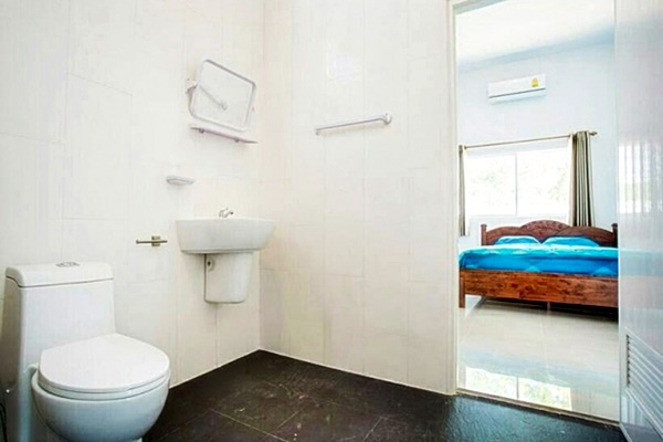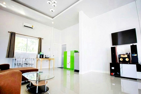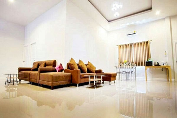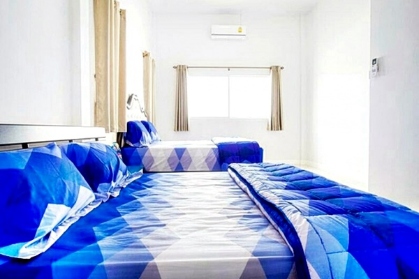 - บ้านพักมีขนาด 3 ห้องนอน 3 ห้องน้ำ มีเตียง 6 ฟุต 4 เตียงเท่านั้น