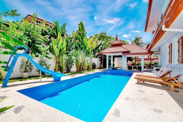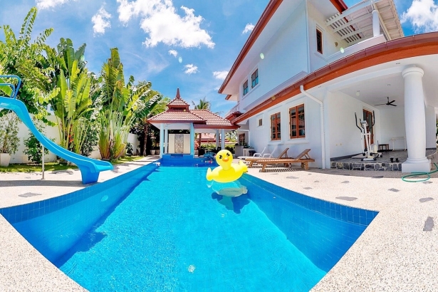 บ้านซันเดย์ หัวหิน พูลวิลล่า บ้านพักมีขนาด 4 ห้องนอน 3 ห้องน้ำ ตั้งอยู่ในหัวหินซอย 116 สระว่ายน้ำส่วนตัว และ สไลเดอร์ รองรับได้จำนวน 12 ท่าน เสริมได้อีก 6 ท่าน ล้อมรอบด้วยธรรมชาติ บรรยากาศร่มรื่น สิ่งอำนวยความสะดวกครบครัน อาทิ เช่น โต๊ะสนุ๊ก ขนาด 4×8 ฟุต คาราโอเกะ ไฟเธค ที่เหมาะสำหรับท่านไหนที่ต้องการโชว์ลูกคอรักในเสียงเพลง คนที่รักทำอาหารไม่ควรพลาดทางบ้านพักมีอุปกรณ์ครัวไว้รองรับให้ลูกค้าโชว์ฝีมือการทำอาหารให้กับคนที่ท่านรัก พร้อมยังมีเตาปิ้งย่างไว้ให้บริการที่บ้านพัก เหมาะแก่การพักผ่อนเพื่อชาร์จพลังชีวิตในวันหยุดสุดหรรษา สำหรับคนที่ชอบความสนุกไม่ควรพลาด!!