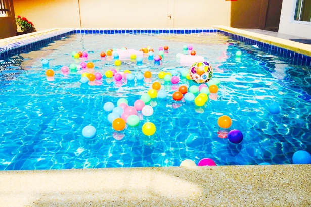 - มีลูกบอลในสระ