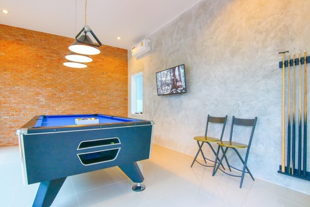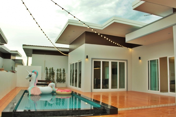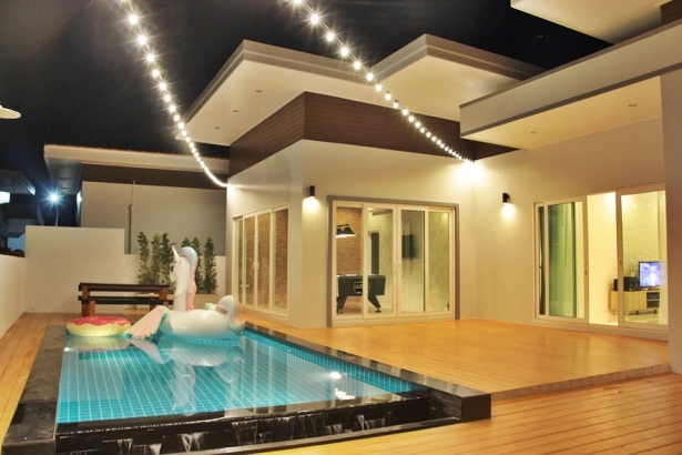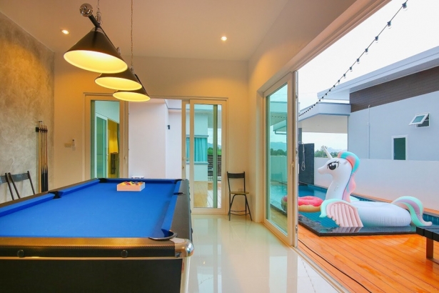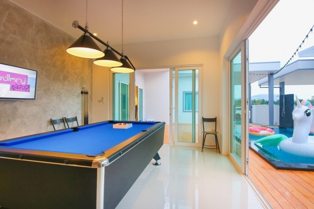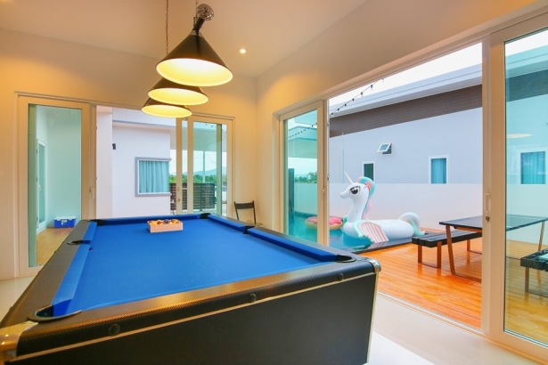 บ้านธันเดอร์ หัวหิน พูลวิลล่า บ้านพักชั้นเดียวตกแต่งสไตล์โมเดิร์น ตั้งอยู่หัวหินซอย 70 มีลักษณะ 3 ห้องนอน 3 ห้องน้ำ สระว่ายน้ำส่วนตัว ระบบน้ำเกลือ มีห่วงยางแฟนซีภายในสระบรรยากาศเงียบสงบเป็นส่วนตัว รองรับได้ 10 ท่าน เสริมได้อีก 2 ท่าน ฟรี!! คาราโอเกะ โต๊ะพูล เพิ่มความสนุกสนานในยามเข้าพัก สามารถเสียงดังได้ทั้งคืน เหมาะสำหรับพากลุ่มเพื่อนและกลุ่มครอบครัว มาพักผ่อนสังสรรค์ในวันหยุด ติดเครื่องปรับอากาศ ทั้งหลัง ให้เย็นชื่นใจให้หายร้อนกันไปเลย บริการฟรี!! Wi-Fi ลูกค้าสามารถซื้ออาหารทะเลสดๆ มาทำที่บ้านพักได้ มีอุปกรณ์ทำครัว พร้อมเตาปิ้งย่าง