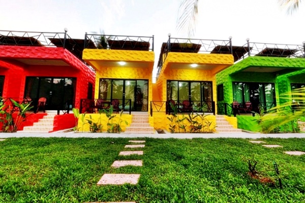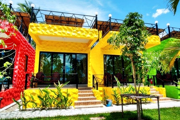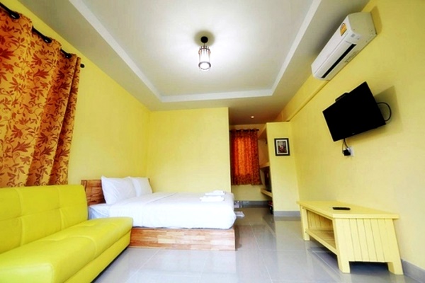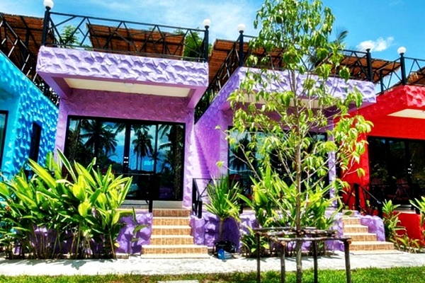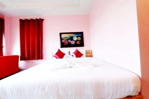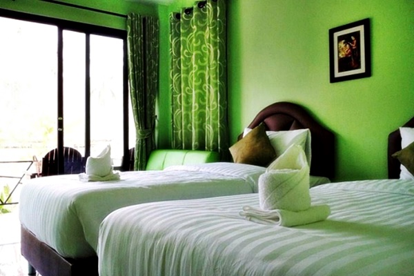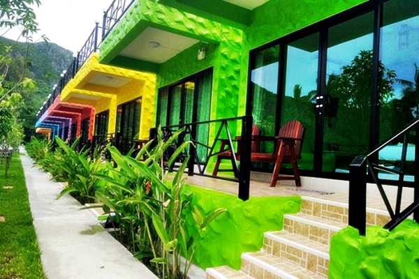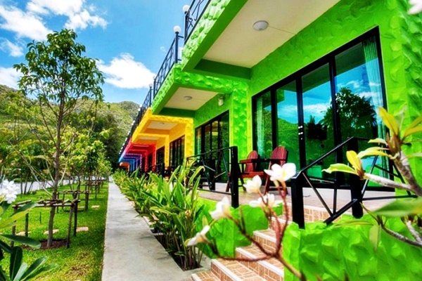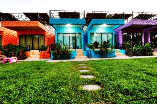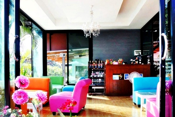 - ห้องพักที่ตกแต่งสไตล์โมเดิร์นหลากสีสัน