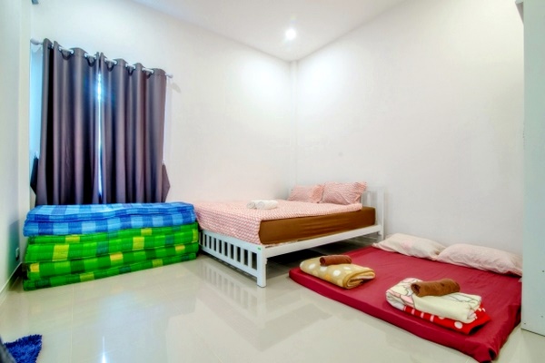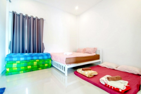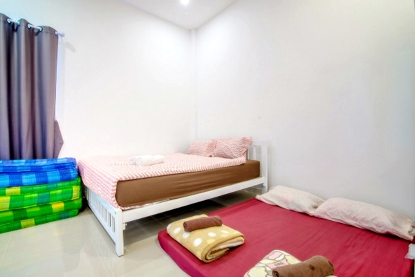 - มีเตียง 6 ฟุต 3 เตียง และ ที่นอนเสริมตามจำนวนคนเข้าพัก