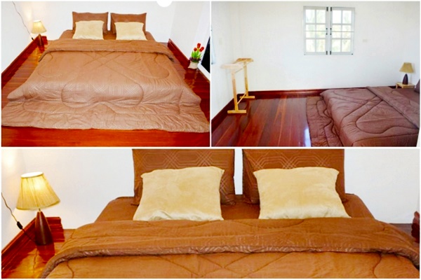 - บ้านพักมีเตียงขนาด 6 ฟุตห้องละ 1 เตียง และที่นอนเสริม 3.5 ฟุต 2 ที่