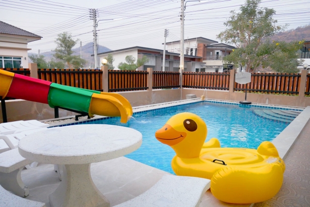 บ้านฟ้าดาว สไลเดอร์ พูลวิลล่า ตั้งอยู่หัวหินซอย 6 บ้านพักหลังใหญ่ ใกล้ชิดธรรมชาติ บรรยากาศดี บ้านพักมี 3 ห้องนอน 3 ห้องน้ำ สระว่ายน้ำส่วนตัว พร้อมสไลเดอร์ยาวและใหญ่มาก รองรับลูกค้าได้ 10 ท่าน เสริมได้อีก 5 ท่าน มีดาดฟ้าชมวิว วิวภูเขา กางเต้นท์ บริเวณดาดฟ้าได้ ติดเครื่องปรับอากาศทั้งหลัง บริการ !!คาราโอเกะ ไฟเธค และ โต๊ะสนุ๊ก สามารถจัดปาร์ตี้ อุปกรณ์ครัว เตาปิ้งย่างครบ