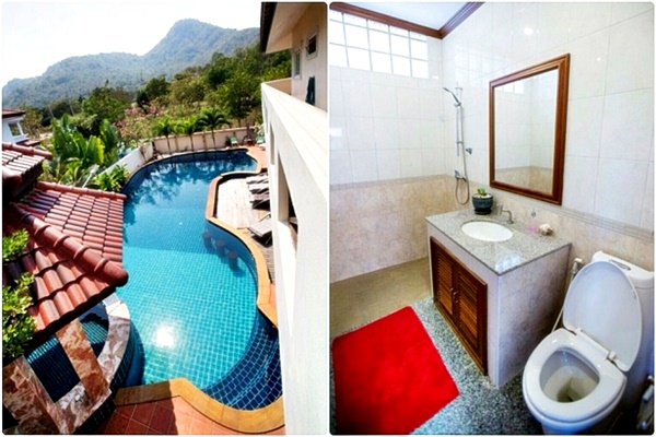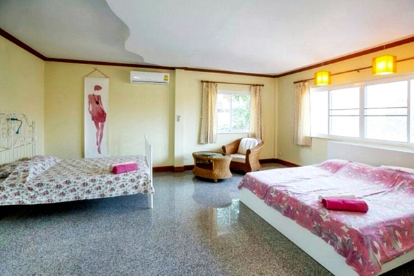 - บ้านพักมี 6 ห้องนอน 6 ห้องน้ำ เตียงขนาด 6 ฟุต 4 เตียง และเตียง 5 ฟุต 2 เตียง