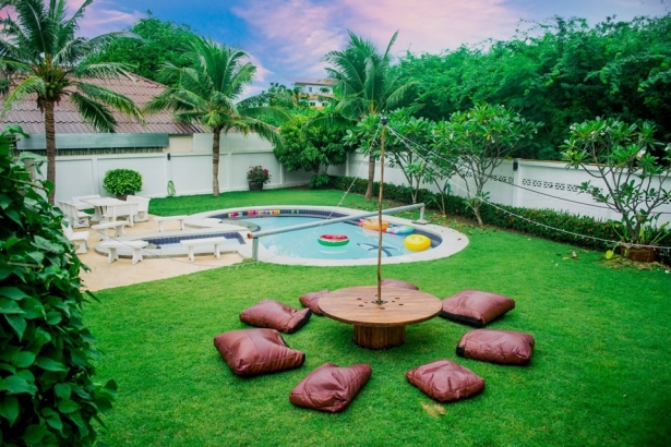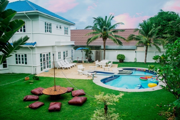 บ้านมายดรีม หัวหิน พูลวิลล่า บ้านพักขนาดใหญ่สไตล์บ้านพักตากอากาศ มีลักษณะ 4 ห้องนอน 4 ห้องน้ำ สามารถรองรับจำนวนผู้เข้าพักได้ 12 ท่าน เสริมได้อีก 8 ท่าน ตั้งอยู่หัวหินซอย 58 สระส่วนตัวพร้อมห่วงยาง มีกิจกรรมภายในสระด้วย นั่นก็คือมวยทะเล บริเวณบ้านก็มีขนาดกว้างขวาง สนามหญ้ามีเบาะให้นั่งล้อมวงชิวๆกันได้อีก ภายในบ้านก็มีกิจกรรมให้ทำด้วยเช่นกัน สำหรับใครที่ชอบร้องเพลง ทางเราก็เตรียมคาราโอเกะ ไฟเธคไว้รองรับ ส่วนคุณผู้ชายก็ไม่ต้องห่วง บ้านพักของเรามีโต๊ะพูลไว้ให้ได้เล่น รับรองไม่มีเบื่อแน่นอน นอกจากนั้นยังมีอุปกรณ์ครัวให้ครบครัน และเตาปิ้งย่างไว้รองรับอีกด้วย