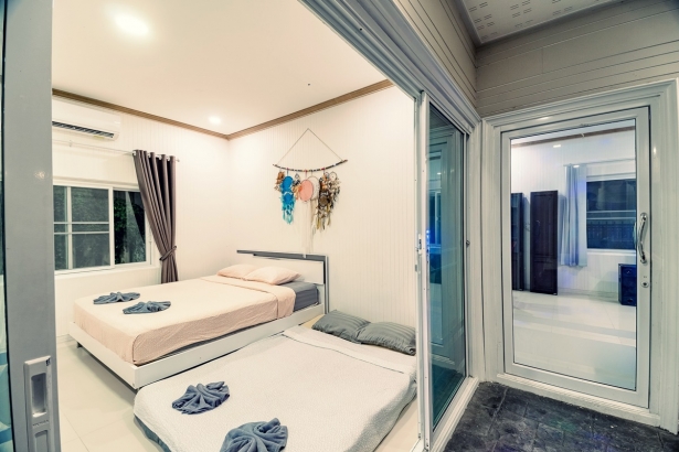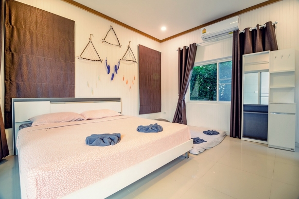 บ้านราตรี 2 : บ้าน 3 ห้องนอน 2 ห้องน้ำ มีเตียง 6 ฟุต 2 เตียง , เตียง 3.5 ฟุต 2 เตียง และฟูกเสริม 5 ฟุต 2 อัน