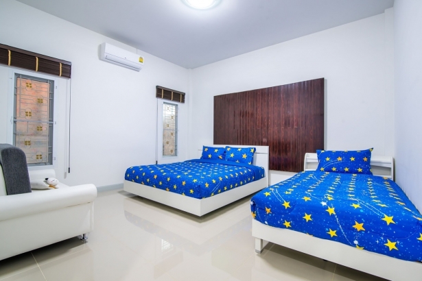 - บ้านพักมีเตียงขนาด 6 ฟุต 2 เตียง, 5 ฟุต 1 เตียง, 3.5 ฟุต 1 เตียง และเบาะที่นอนเสริม 3.5 ฟุต 3 อัน