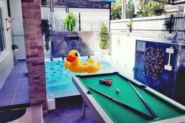 บ้านอินเนอร์ หัวหิน พูลวิลล่า บ้านพักมี 3 ห้องนอน 2 ห้องน้ำ รองรับผู้เข้าพักได้ 7 ท่าน เสริมได้ 3 ท่าน ตั้งอยู่หัวหินซอย 70 มีสระว่ายน้ำส่วนตัว พร้อมห่วงยางแฟนซีและลูกบอลแฟนซี เครื่องปรับอากาศทั้งหลัง มีคาราโอเกะ + ไฟเธค โต๊ะพูล มีเตาปิ้งย่าง สามารถทำอาหารได้ ใกล้ร้านสะดวกซื้อ ขับรถไปทะเล 10-15 นาที