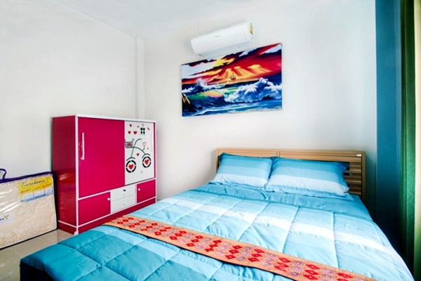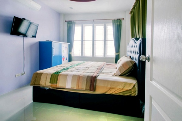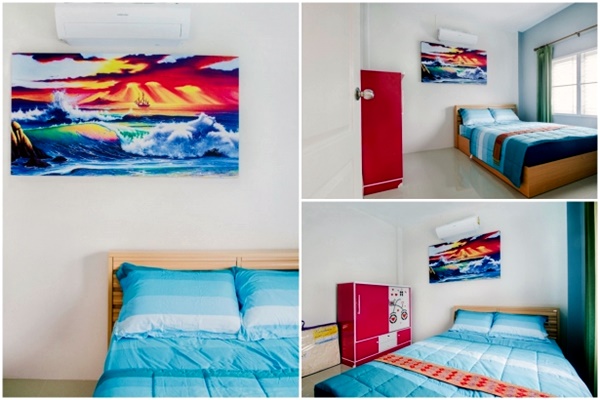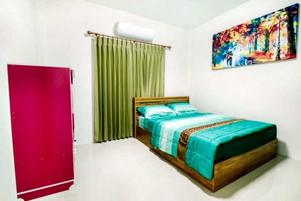 - บ้านพักมีเตียงขนาด 6 ฟุต ห้องละ 1 เตียง และที่นอนเสริมห้องละ 1 ชุด
