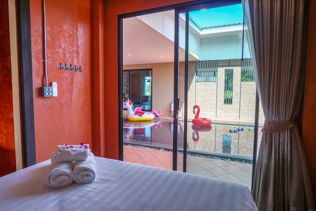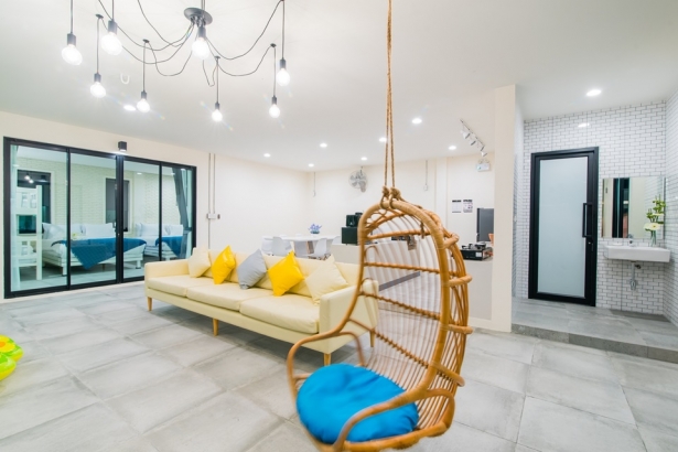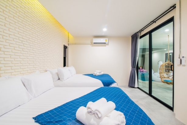 - บ้านเดอะเวิร์ล หัวหิน (บาหลี) บ้านพักมี 4 ห้องนอน 5 ห้องน้ำ มีเตียง 5 ฟุต 5 เตียง เข้าพักได้ 10 ท่าน เสริมได้ 4 ท่าน