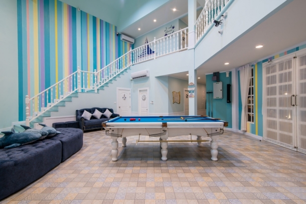 บ้านเบบี้ชาร์ค ชะอำ พูลวิลล่า บ้านพักที่ได้รับการตกแต่งให้สอดคล้อง กับ ทะเล เน้นโทนสี น้ำเงิน ขาว รองรับผู้เข้าพักได้ 18-50 ท่าน มีสระว่ายน้ำส่วนตัว พร้อมสไลเดอร์สุดมันส์ ขนาด 24 เมตร บริเวณรอบบ้านพัก ตกแต่ง อย่างร่มรื่น มีเก้าอี้ นั่งเล่น ริมสระ ภายในบ้านพักประกอบด้วย 7 ห้องนอน 9 ห้องน้ำ 1 ห้อง Entertainment (ห้องน้ำในตัวทุกห้อง) สามารถ ประกอบอาหาร ได้ อุปกรณ์ครัว เตาปิ้งย่าง พร้อมถ่าน บ้านพักตั้งอยู่ชะอำ