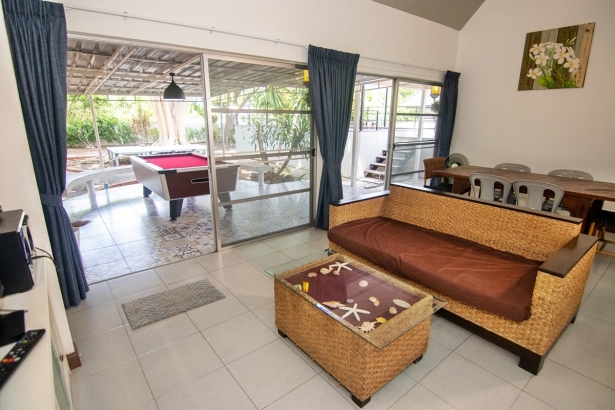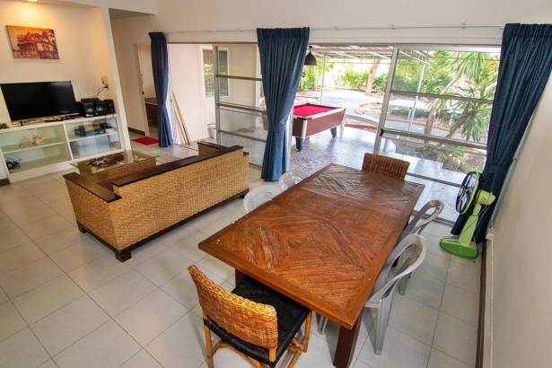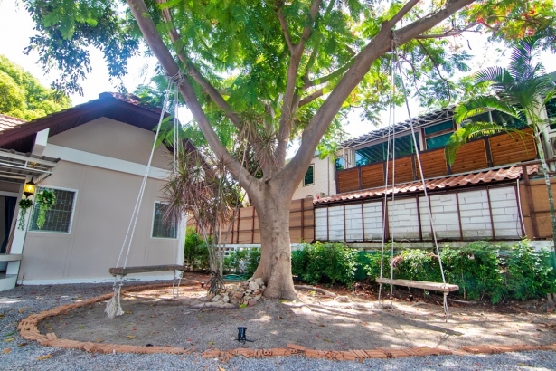 บ้านเพลินเล หัวหิน พูลวิลล่า บรรยากาศร่มรื่น ตั้งอยู่หัวหินซอย 41 มีพื้นที่กว้าง บ้านพักมี 3 ห้องนอน 2 ห้องน้ำ ห่างทะเล 230 เมตร เดินไปได้ สระว่ายน้ำส่วนตัว รองรับลูกค้าได้ 10 ท่าน เสริมได้อีก 5 ท่าน บริการ !! คาราโอเกะ ไฟเธค และ โต๊ะพูล พร้อม WiFi ฟรี สามารถทำอาหารได้ มีอุปกรณ์ครัว เตาปิ้งย่าง สิ่งอำนวยความสะดวกครบ สำหรับคนที่รักมีสัตว์เลี้ยง ไปไหนก็พาไปด้วย ก็ไม่ต้องเสียใจ ทางบ้านพักอนุญาตให้นำเข้าพักได้ (มีค่าบริการ)