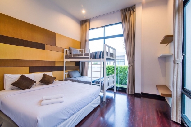 - บ้านพักมีเตียง 6 ฟุต 1 เตียง, 5 ฟุต 2 เตียง, 3.5 ฟุต (2ชั้น) และที่นอนเสริม 2 ชุด