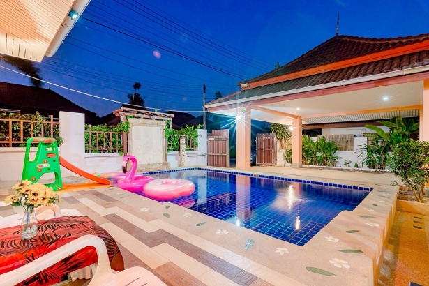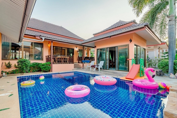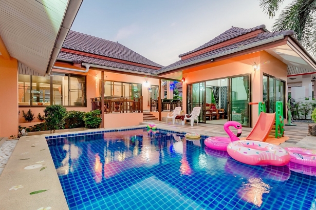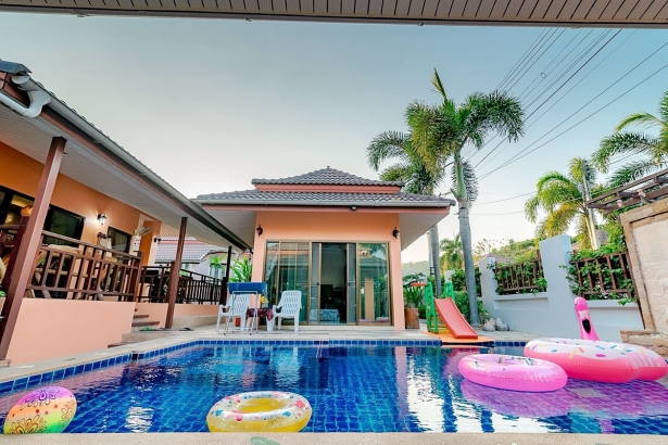 บ้านแครอท หัวหิน พูลวิลล่า บ้านพักมี 4 ห้องนอน 3 ห้องน้ำ รองรับผู้เข้าพักได้ 10 -15 ท่านเท่านั้น ตั้งอยู่หัวหินซอย 102 มีสระว่ายน้ำส่วนตัว พร้อมสไลเดอร์และของเล่นในสระให้ได้เล่นกันอย่างสนุกสนานอีกด้วย ติดเครื่องปรับอากาศทั้งหลัง ฟรีอินเตอร์เน็ตไร้สาย มีคาราโอเกะ ไฟเธค และโต๊ะสนุ๊กสามารถจัดปาร์ตี้กันได้อย่างเต็มที่ และยังมีเกมส์ฝึกสมองอีกด้วย เหมาะสำหรับการมาพักผ่อนกับเพื่อนๆหรือครอบครัวเป็นอย่างมาก ทำอาหารได้ มีเตาปิ้งย่างให้ อุปกรณ์ครัวครบครัน ใกล้สถานที่ท่องเที่ยวมากมาย