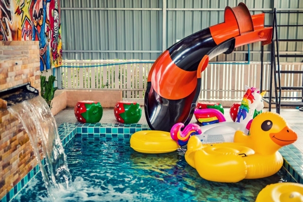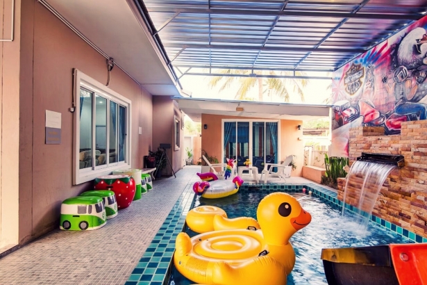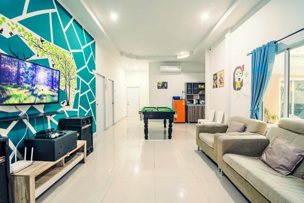 บ้านแบมบู หัวหิน พูลวิลล่า ตั้งอยู่หัวหินซอย 70 บ้านพักมี 3 ห้องนอน 2 ห้องน้ำ ตกแต่งสไตล์โมเดิร์น สระว่ายน้ำส่วนตัว พร้อมสไลเดอร์ รองรับลูกค้าได้ 10 ท่าน เสริมได้ 3 ท่าน มีบริการ!! คาราโอเกะ ไฟเธค โต๊ะสนุ๊ก ให้ได้ร้องเล่นเต้นกันอย่างสนุกสนาน ภายในบ้านพักมีอุปกรณ์ครัว เตาปิ้งย่าง สามารถประกอบอาหารได้ สิ่งอำนวยความสะดวกต่างๆมากมาย