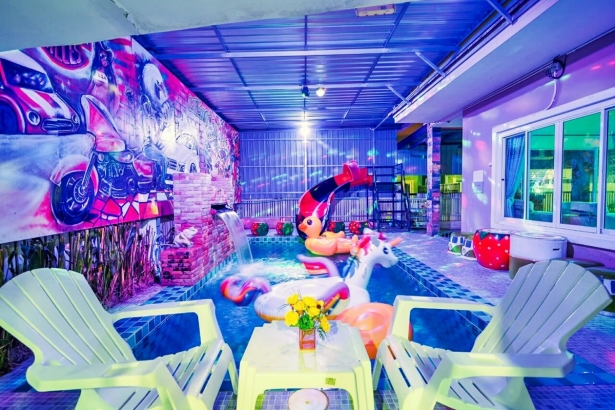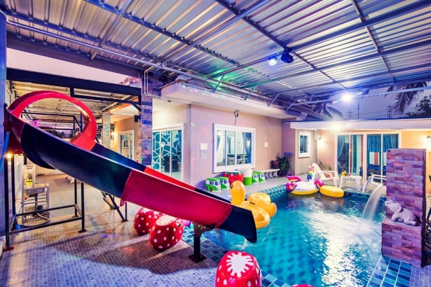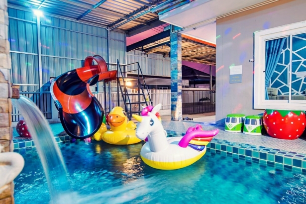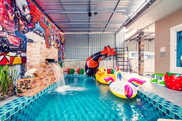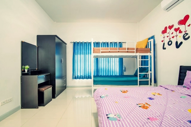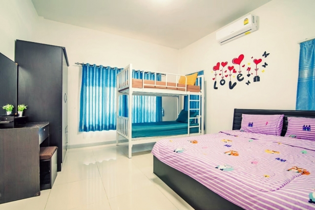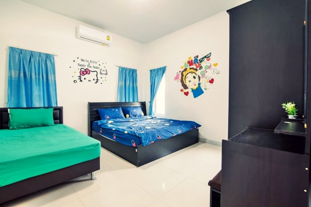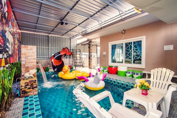 – บ้านพักมีเตียง 5 ฟุต 4 เตียง และ เตียง 2 ชั้น 3.5 ฟุต 1 เตียง - สระว่ายน้ำส่วนตัว (ใต้หลังคา)