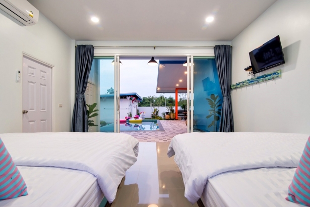ห้องที่ 3 (วิวสระว่ายน้ำ)มีเตียง 6 ฟุต 2 เตียง มีห้องน้ำในตัว - สระว่ายน้ำส่วนตัว