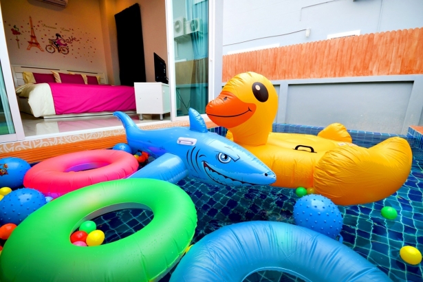 - บริการฟรี!! ขอเล่นในสระว่ายน้ำ