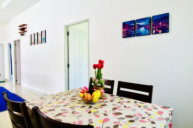 - บ้านพักมี 4 ห้องนอน 2 ห้องน้ำ มีเตียง 6 ฟุต ห้องละ 1 เตียง ที่นอนเสริมห้องละ 1 ชุด