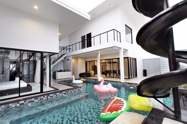 บ้านคอนทราสต์ หัวหิน พูลวิลล่า ตั้งอยู่หัวหินซอย 70 บ้านพักมี 3 ห้องนอน 4 ห้องน้ำ 1 ห้องนั่งเล่น ตกแต่งสไตล์ลอฟท์ปูนเปลือย โดดเด่นด้วยดีไซน์ พร้อมสระว่ายน้ำส่วนตัว สไลเดอร์สุดเก๋ มีห่วงยางแฟนซี บริการ!! คาราโอเกะ ไฟเธค และ โต๊ะพูล อินเทอร์เน็ตไร้สาย (Wi-Fi) ฟรี รองรับลูกค้าได้ 12 ท่าน เท่านั้น แอร์ทั้งหลัง อุปกรณ์ครัว เตาปิ้งย่างครบ ประกอบอาหารได้ ปาร์ตี้เสียงดังได้ถึง 24.00 น. สิ่งอำนวยความสะดวกมากมาย