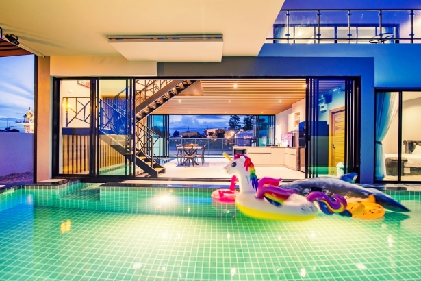 บ้านคอสมอส หัวหิน พูลวิลล่า ตั้งอยู่หัวหินซอย 70 ตกแต่งสไตล์โมเดิร์น ล้ำสมัย บ้านพักมี 4 ห้องนอน 4 ห้องน้ำ 1 ห้องนั่งเล่น สระว่ายน้ำส่วนตัว สระเด็ก มีสไลเดอร์ ห่วงยางแฟนซี รองรับลูกค้าได้สูงสุด 15 ท่าน บริการ!! คาราโอเกะ ไฟเธค เสียงดังได้ถึง 24.00 น. สามารถทำอาหารได้ อุปกรณ์ครัว เตาบาร์บีคิว สิ่งอำนวยความสะดวกครบครัน
