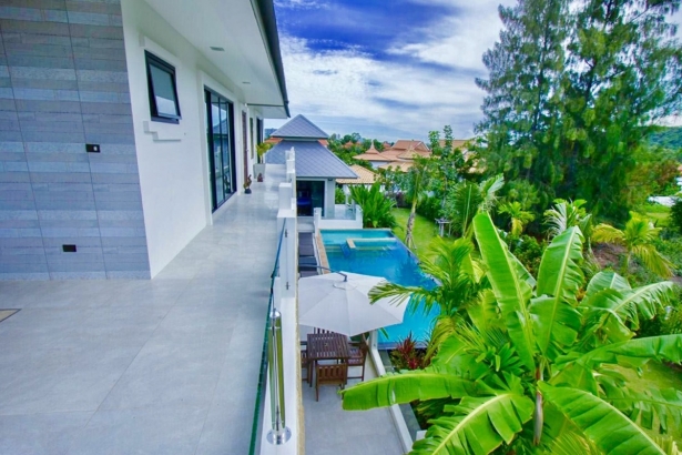 - ระเบียงนั่งเล่นข้างสระน้ำ