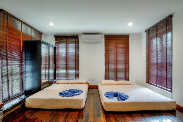- มีเตียง 6 ฟุต 5 เตียง, 5 ฟุต 5 เตียง, 3 ฟุต 2 เตียง และที่นอนเสริมตามจำนวนคนเข้าพัก