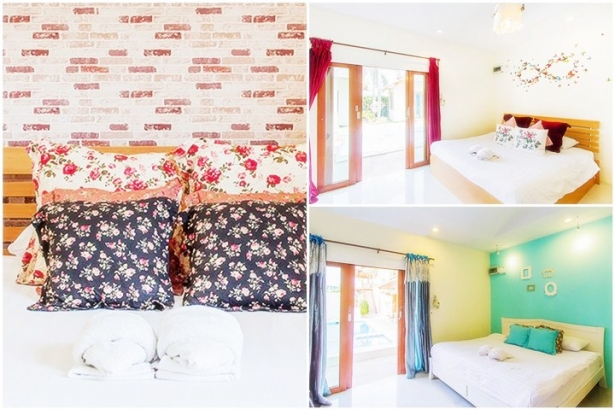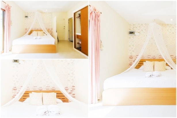 - บ้านพักมีเตียง 6 ฟุต ห้องละ 1 เตียง