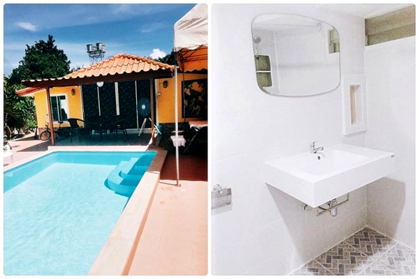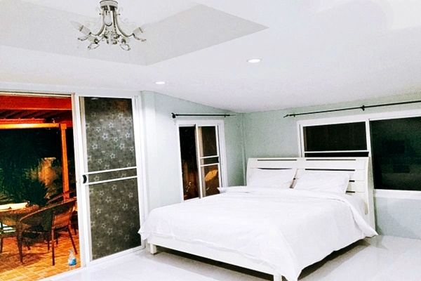 - บ้านพักมี 2 ห้องนอน 2 ห้องน้ำ(สามารถเปิดประตูคอนเนคหากันได้) มีเตียงขนาด 6 ฟุต ห้องละ 1 เตียง และที่นอนเสริม 6 ฟุต 1 ชุด