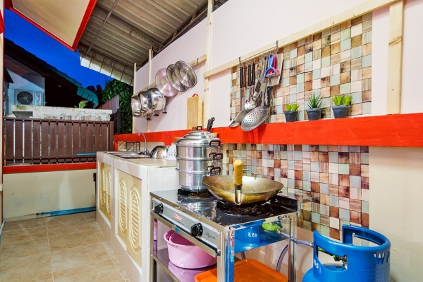 - ครัวไทย (นอกบ้าน) (อุปกรณ์ทำครัวครบ โต๊ะ เตาแก๊ส กะทะ หม้อต้ม)
