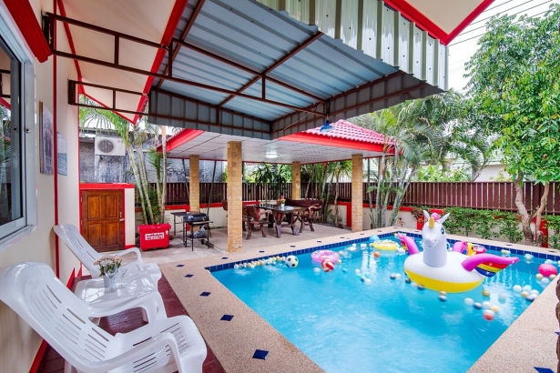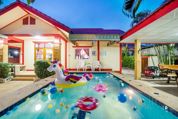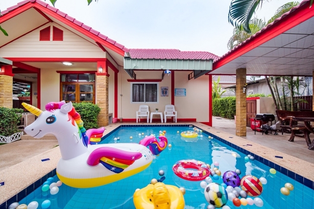 บ้านซาวด์แทร็ก หัวหิน พูลวิลล่า ตั้งอยู่หัวหินซอย 88 มี 3 ห้องนอน 2 ห้องน้ำ พร้อมสระว่ายน้ำส่วนตัว มีห่วงยางแฟนซีให้เล่น ริมสระว่ายน้ำมีพื้นที่นั่งกินได้สุดชิลล์ รองรับลูกค้าได้ 10 ท่าน เสริมได้อีก 5 ท่าน บริการ!! คาราโอเกะ ไฟเธค และ โต๊ะสนุ๊ก จัดปาร์ตี้ เสียงดังได้ถึง 23.00 น. มีอุปกรณ์ครัว เตาปิ้งย่าง สามารถทำอาหารได้ ไม่ว่าจะสร้างสรรรค์ในกลุ่มเพื่อน หรือ ครอบครัว ก็ฟินสุด อินเทอร์เน็ตไร้สาย (Wi-Fi) ฟรี พร้อมสิ่งอำนวยความสะดวกครบครัน สำหรับ คนรักสุนัข ที่ไปไหนก็พากันไปด้วย ก็สามารถนำไปเข้าพักได้(มีค่าบริการ)