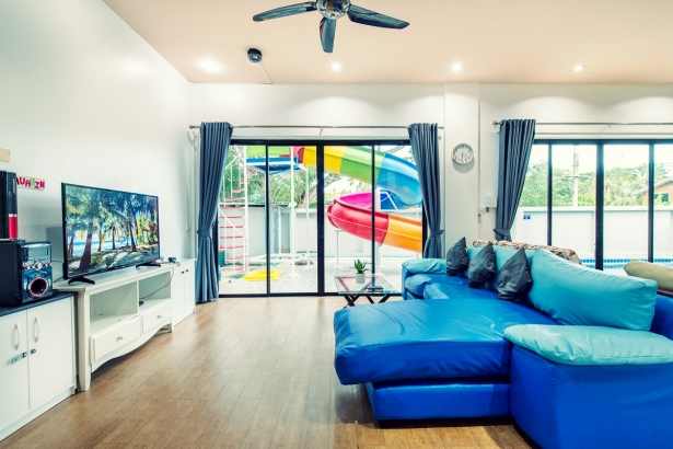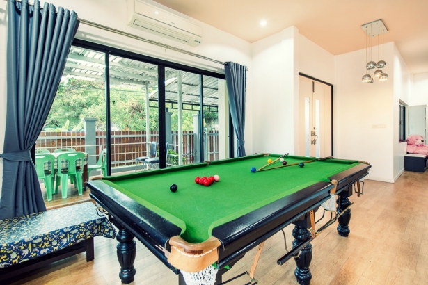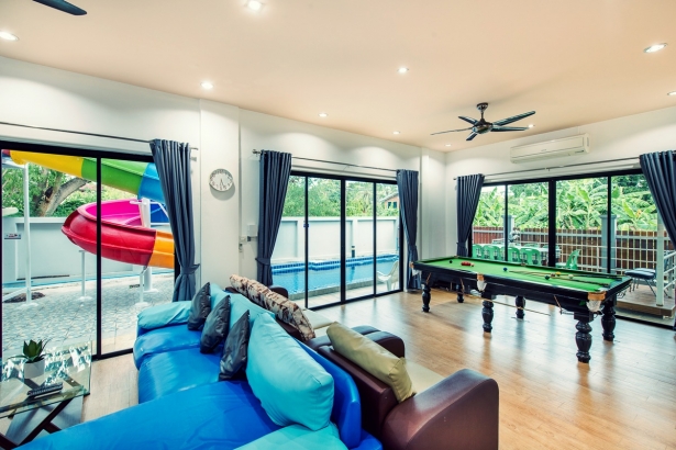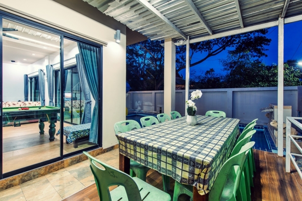 บ้านซีสไมล์ หัวหิน พูลวิลล่า บ้านพักแบบ 4 ห้องนอน 4 ห้องน้ำ มีดาดฟ้าให้ชมวิว สามารถนอนดูดาวได้ ได้บรรยากาศสุดโรแมนติกสุด ๆ รองรับผู้เข้าพักได้ 14 ท่าน เสริมได้ 5 ท่าน สระว่ายน้ำ(4*7 เมตร ลึก 1.2 – 1.4 เมตร) พร้อมสไลเดอร์ จอดรถ 2 คัน (นอกบ้าน 1 คัน) มีเตียงให้นอนอาบแดดริมสระ อุปกรณ์ครัวครบ มีเคาน์เตอร์บาร์ และคาราโอเกะ ไว้สำหรับคนที่ชอบร้องเพลงเป็นอย่างมาก ติดเครื่องปรับอากาศทั้งหลัง สิ่งอำนวยความสะดวกครบครัน สามารถประกอบอาหารได้