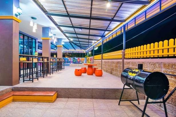 - โต๊ะอาหารนั่งกินริมสระว่ายน้ำ
