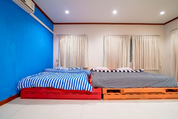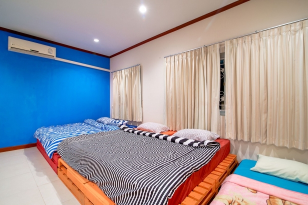 มีเตียง 6 ฟุต ทั้ง 3 ห้อง และ ที่นอนเสริม 5 ชุด