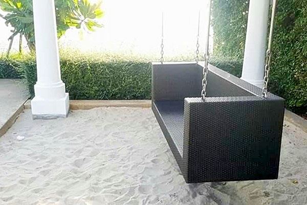 - เตียงนอนเป่าลมบริเวณสระว่