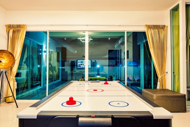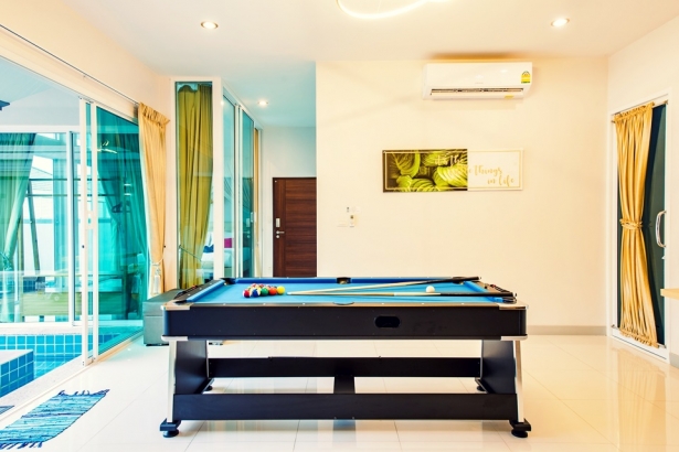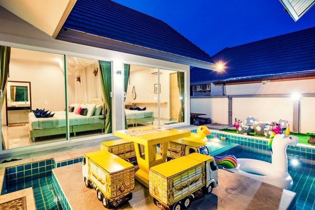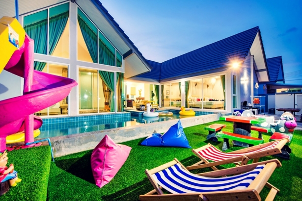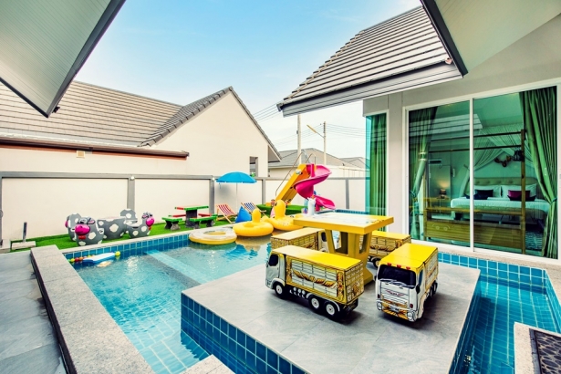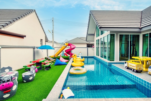 บ้านดีไซน์ ชะอำ พูลวิลล่า บ้านพักชนาด 4 ห้องนอน 3 ห้องน้ำ รองรับผู้เข้าพักได้ 15 ท่าน เท่านั้น เสริมไม่ได้ บ้านพักมาพร้อมกับ ความเป็นส่วนตัว สามารถประกอบอาหารได้ มีอุปกรณ์ครัวครบ เตาปิ้งย่าง พร้อมสำหรับ ย่างอาหารทะเล ติดเครื่องปรับอากาศทั้งหลัง มีคาราโอเกะ +ไฟเธค บริเวณ ห้องรับแขก สร้างความบันเทิงให้กับผู้เข้าพัก ภายนอกมีสระว่ายน้ำส่วนตัว สำหรับ ผ่อนคลาย มี สไลเดอร์ ริมสระ เพิ่มความสนุก ตลอดเวลาเข้าพัก