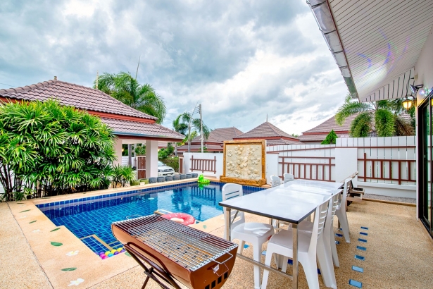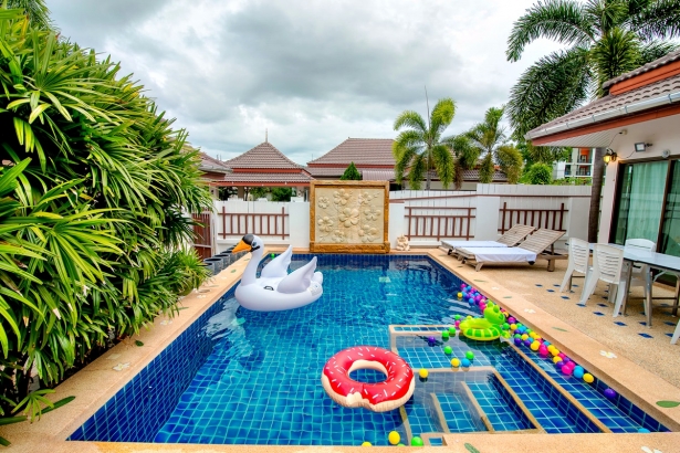 บ้านต้องรัก หัวหิน พูลวิลล่า มีขนาด 2 ห้องนอน 3 ห้องน้ำ บ้านพักบรรยากาศดีร่มรื่น ตั้งอยู่ในซอยหัวหิน 102 เงียบสงบมีความเป็นส่วนตัวสูง มาพร้อมสระว่ายน้ำส่วนตัวขนาดขนาด 4X6 ลึก 1.40 เมตร ฟรี!! ลูกบอลและห่วงยางแฟนซี ไว้บริการอีกด้วย เชื่อว่าหลายๆ คนต้องชอบเป็นอย่างมาก เครื่องครัวครบ เตาปิ้งย่าง สามารถทำอาหารได้ สำหรับคนที่ชอบงานสังสรรค์หรือร้องเพลง เราก็ยังมี คาราโอเกะ และ ไฟเธค ไว้บริการ และยังเอาใจคนที่ชอบเล่นกีฬาเรายังมี โต๊ะพูล ไว้ให้อีกด้วย พร้อมสิ่งอำนวยความสะดวกอย่างครบครัน รับรองใครได้มาพักที่นี้จะต้องติดใจและกลับมาพักอีกอย่างแน่นอนค่ะ เสียงดังได้ถึง 24.00 น.