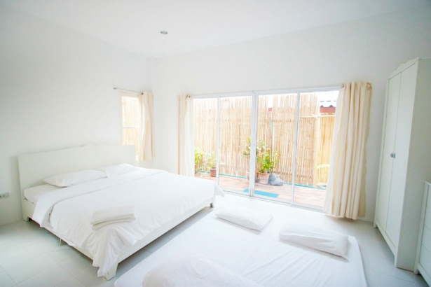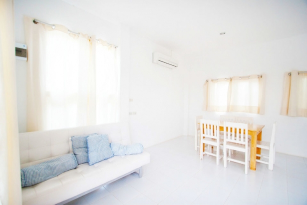 บ้านนอนหมู่ 2 บ้านพักสีขาว 1 ชั้น สามารถพักได้ถึง 4 – 6 ท่าน ห้องพักมี 1 ห้องนอน และ 1 ห้องนั่งเล่น มีมุมประกอบอาหาร โต๊ะอาหาร โซฟาเบด มีห้องน้ำ 2 ห้อง อยู่ในบริเวณห้องนอน 1 ห้อง และ บริเวณห้องนั่งเล่น 1 ห้อง ห้องนอน มีเตียง คิงไซส์ 1 เตียง ท่านที่ 3 – ท่านที่ 6 ที่นอนเป็นลักษณะยางพาราปูพื้น ห่างจากทะเลเพียง 80 เมตร