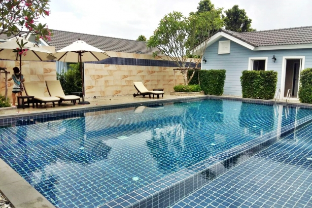 บ้านบลูวัลเล่ย์ หัวหิน บ้านพักสไตล์โมเดิร์นการตกแต่งเรียบง่าย บรรยากาศร่มรื่นล้อมรอบด้วยสนามหญ้าสีเขียว สามารถนำสุนัขเข้าพักได้ ตั้งอยู่หัวหิน ซ. 70 บ้านพักมี 2 ชั้น ขนาด 3 ห้องนอน 2 ห้องน้ำ สระว่ายน้ำพร้อมทั้งฟิตเนส (ส่วนกลาง) สำหรับลูกค้าที่รักสุขภาพได้ออกกำลังกายพร้อมแช่น้ำเย็นๆ มองเห็นวิวทิวทัศน์ธรรมชาติ อีกทั้งมีเปลนอนริมสระไว้สำหรับลูกค้านอนอาบแดด ภายในบ้านพักนั้นลูกค้าสามารถซื้ออาหารทะเลเข้ามาทำอาหารได้ (เฉพาะบริเวณหน้าบ้าน) ลูกค้าที่ชอบปิ้งย่าง ทางเราได้เตรียมเตาปิ้งย่างไว้คอยบริการลูกค้า พร้อมอุปกรณ์ครัวครบครัน ติดแอร์ทั้งหลังให้เย็นฉ่ำชื่นใจให้หายร้อนยามพักผ่อน พร้อมทั้งWIFI และโซฟานั่งเล่น เหมาะสำหรับพาครอบครัวและกลุ่มเพื่อนมาพักในวันหยุด จากบ้านพักไปชายหาดหัวหินขับรถไปประมาณ 10-15 นาที