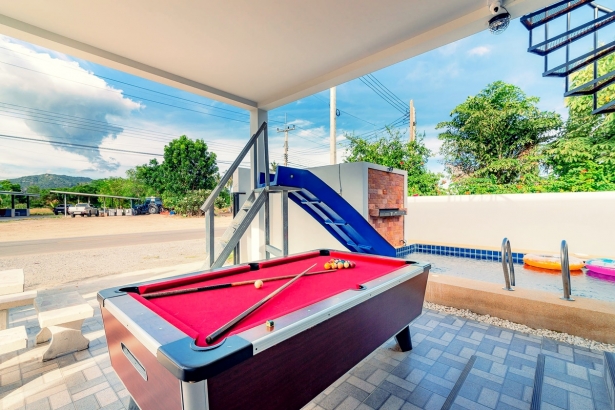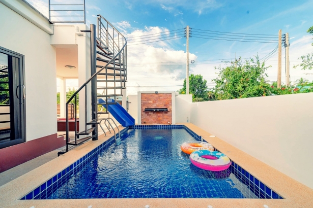 บ้านบลูเบลล์ หัวหิน พูลวิลล่า ตั้งอยู่ใกล้เส้นบายพาส-ปราณบุรี บ้านพักมี 3 ห้องนอน 3 ห้องน้ำ มีดาดฟ้า สระว่ายน้้ำส่วนตัว พร้อมสไลเดอร์ แอร์ทั้งหลัง รองรับลูกค้าได้ 6-10 ท่าน เสริมได้อีก 2 ท่าน บริการ!! คาราโอเกะ ไฟเธค และ โต๊ะพูล อุปกรณ์ครัว เตาปิ้งย่าง สามารถประกอบอาหารได้ สิ่งอำนวยความสะดวกครบครัน สุนัข/แมวสามารถเข้าพักได้ด้วย (มีค่าบริการ)