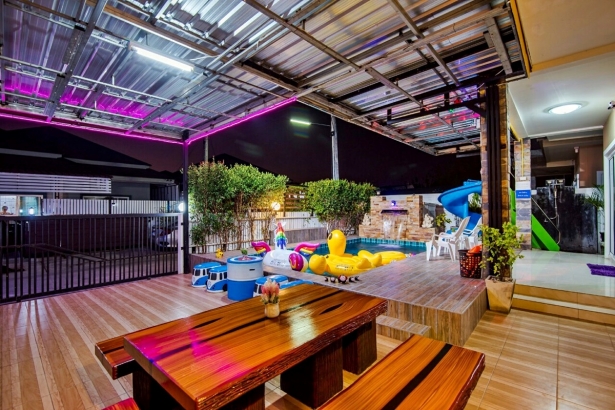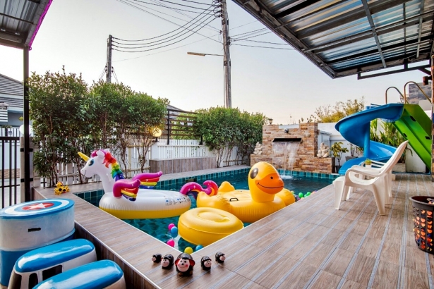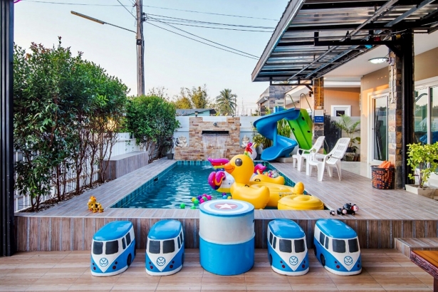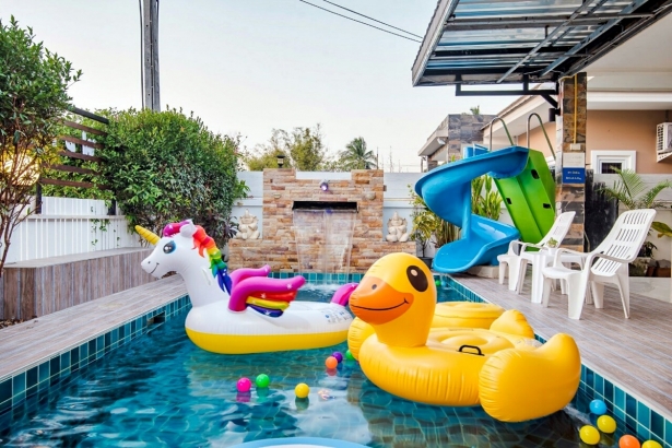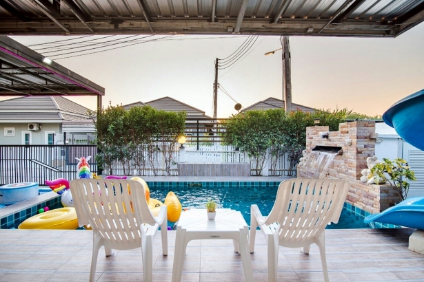 บ้านบูริน หัวหิน พูลวิลล่า บ้านพักหลังใหม่ สไตล์โมเดิร์น บ้านพักมีขนาด 2 ห้องนอน 2 ห้องน้ำ สระว่ายน้ำส่วนตัว (ขนาด 3×6 เมตร) พร้อมห่วงยางแฟนซี สไลเดอร์สุดเกร๋ รองรับลูกค้าได้ 10- 13 ท่าน บริการ!! คาราโอเกะ ไฟเธค โต๊ะสนุ๊ก สำหรับสังสรรค์กับกลุ่มเพื่อนหรือครอบครัว และโต๊ะสนุ๊ก สามารถประกอบอาหารได้ มีอุปกรณ์ทำครัวครบ เตาปิ้งย่าง บริเวณหน้าบ้าน จัดปาร์ตี้เบาๆได้สุดชิว บรรยากาศร่มรื่น สิ่งอำนวยความสะดวกครบครัน พร้อมมุมพักผ่อนและทำกิจกรรมเล็กๆ เหมาะสำหรับช่วงเวลาพักผ่อนในวันหยุดสุดพิเศษจริงๆ