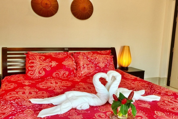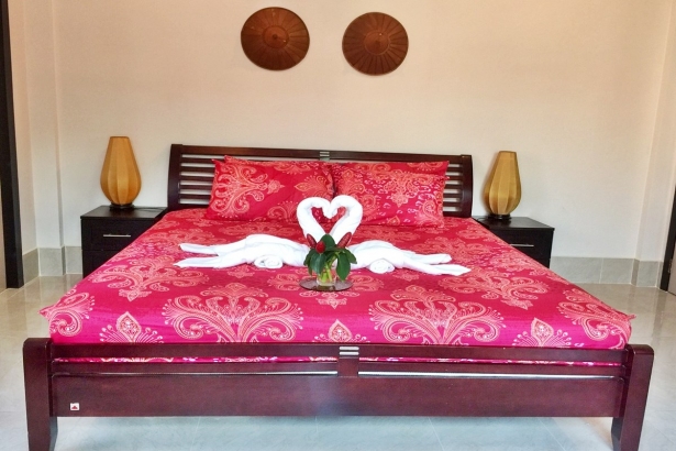 - บ้านพักมี 3 ห้องนอน 3 ห้องน้ำ มีเตียงขนาด 6 ฟุต 2 เตียง, เตียง 5 ฟุต 1 เตียง และ ที่นอนเสริม 4 ชุด