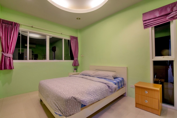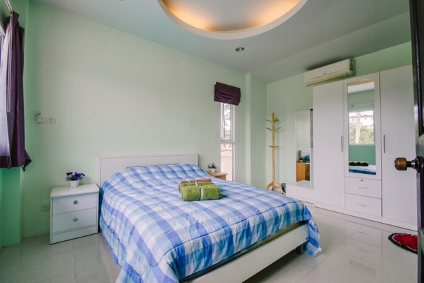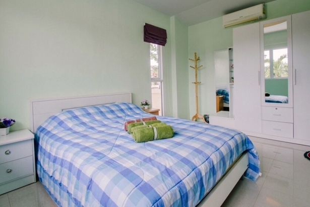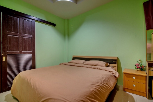 บ้านพักมีเตียง 6 ฟุต 2 เตียง และที่นอนเสริมครบตามจำนวนคนเข้าพัก