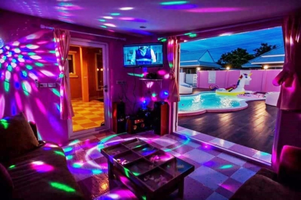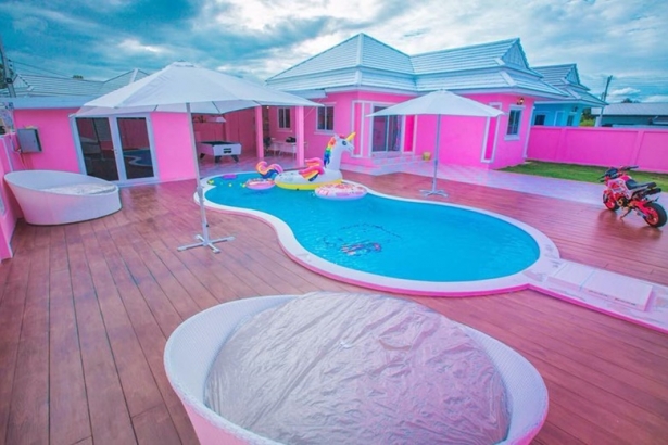 บ้านพิงค์โกลด์ หัวหิน พูลวิลล่า ตั้งอยู่หัวหินซอย 88 บ้านพัก 4 ห้องนอน 3 ห้องน้ำ รองรับได้ 12 ท่าน เสริมได้ 8 ท่าน สุนัขเข้าพักได้ (มีค่าบริการ) ติดแอร์ทั้งหลัง มีสระว่ายน้ำส่วนตัวระบบเกลือ พร้อมสระเด็ก ฟรี !! ห่วงยางแฟนซี มีคาราโอเกะ ไฟเธค พร้อมเครื่องเสียงเต็มระบบ และโต๊ะสนุ๊ก มีห้องครัว พร้อมอุปกรณ์ครัวครบ มีเตาปิ้งย่าง สามารถประกอบอาหารได้ จอดรถในบ้านได้ 1 คัน หน้าบ้านได้อีกหลายคัน อยู่ใจกลางหัวหิน ใกล้สถานที่ท่องเที่ยวมากมาย