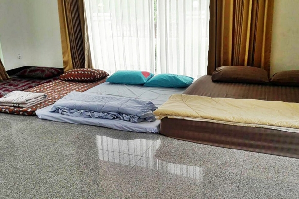 • บ้านพักมี 4 ห้องนอน 3 ห้องน้ำ มีเตียงขนาด 6 ฟุต ห้องละ 1 เตียง ทั้งหมด 3 ห้องนอน (และห้องนอนที่ 4 จะมีเป็นที่นอนเสริม 4 ชุด เท่านั้น)
