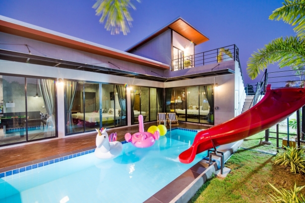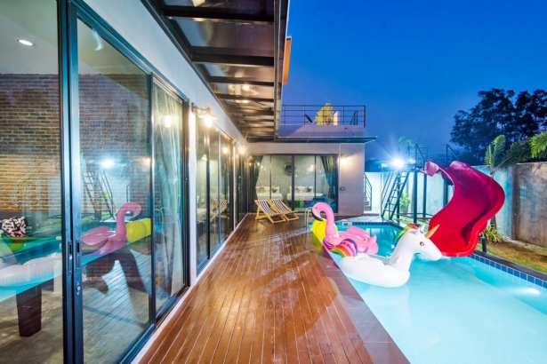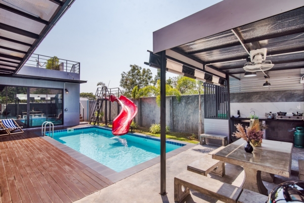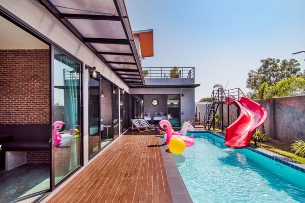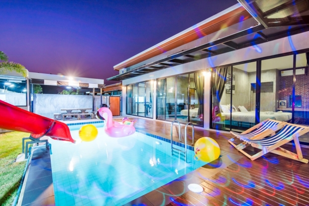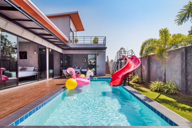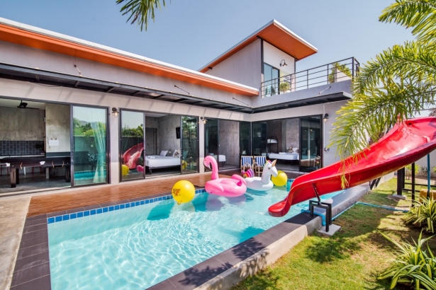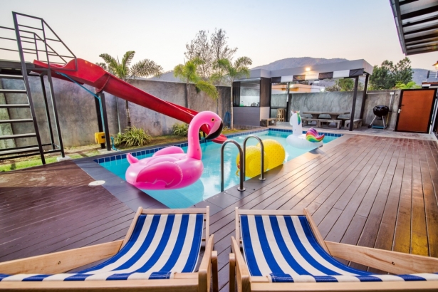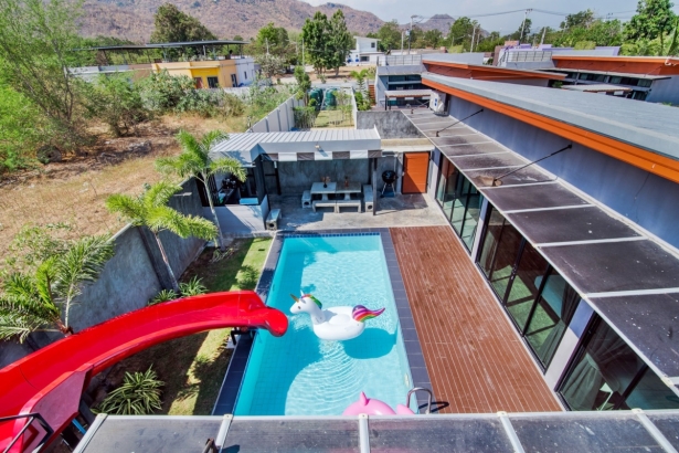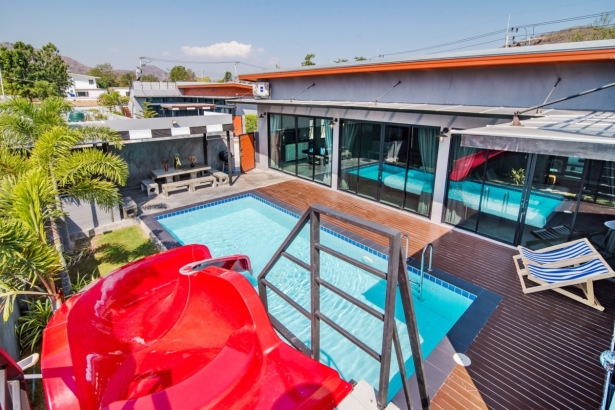 บ้านลาพุช หัวหิน พูลวิลล่า บ้านพักสไตล์ Loft โมเดิร์น มีดาดฟ้าชมวิว ขนาด 4 ห้องนอน 4 ห้องน้ำ มีสระว่ายน้ำส่วนตัว สไลเดอร์ พร้อมห่วงยางแฟนซี รองรับลูกค้าได้ 16 ท่านเสริมได้อีก 2 ท่าน ตั้งอยู่หัวหินซอย 6 ใกล้สถานที่ท่องเที่ยง และแม็คโคร ซื้อของสะดวกสบาย ภายในบ้านพักมี โต๊ะสนุ๊ก คาราโอเกะ ไฟเธคริมสระ ไมโครโฟนสามารถร้องเพลงได้ นอกจากนั้นยังมีห้องครัว outdoor และอุปกรณ์ครัวครบครัน ให้ได้ทำอาหารปาร์ตี้กันเบาๆริมสระว่ายน้ำอีกด้วย เตาปิ้งย่างก็มีให้บริการ