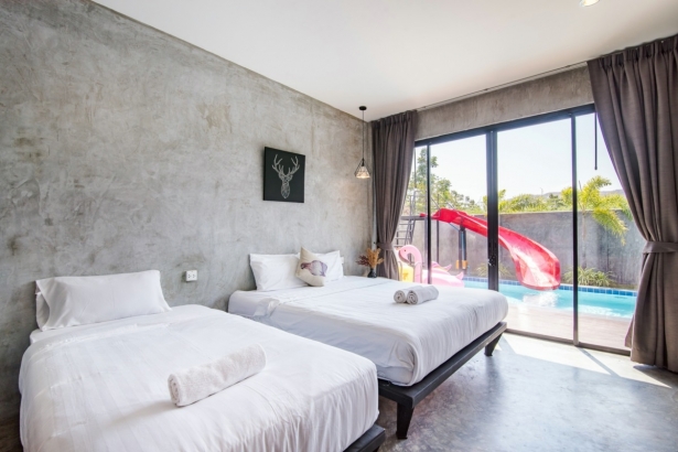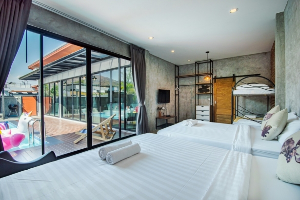 ห้องนอน 2 : เตียง 6 ฟุต เตียง 1 เตียง , 3.5 ฟุต 1 เตียง (ห้องน้ำในตัว)ห้องนอน 3 : เตียง 2 ชั้น 1 เตียง , 6 ฟุต 1 เตียง , 5 ฟุต 1 เตียง (TV 43 นิ้ว)(ห้องน้ำในตัว)ห้องนอน 4 : เตียง 5 ฟุต 2 เตียง (ห้องน้ำในตัว) - คาราโอเกะ TV 50 นิ้ว
