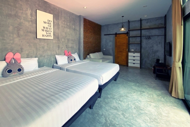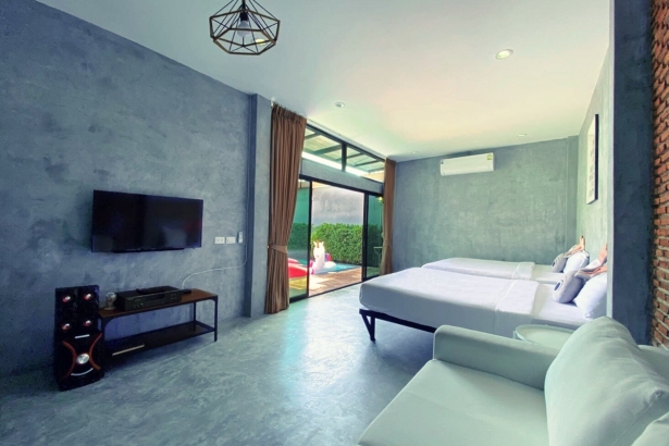 - บ้านพักมีเตียง 6 ฟุต 3 เตียง, 5 ฟุต 1 เตียง, sofa bed 1 และ เตียงเสริม 1 เตียง